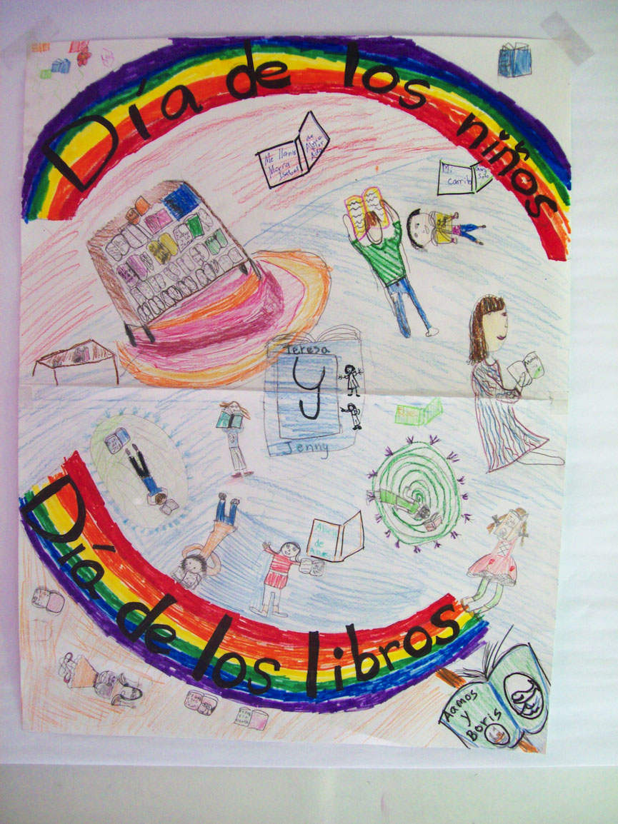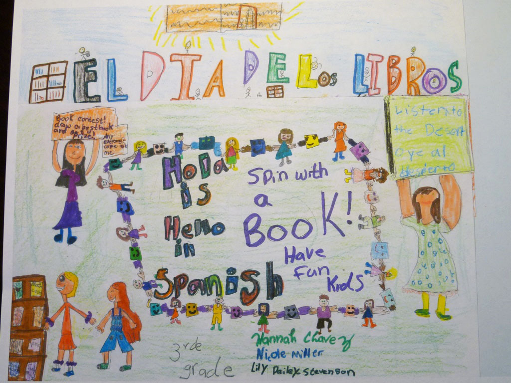 We had a blast celebrating Día de los niños/Día de los libros. We read our favorite books, invited parents to read in English and Spanish and created our poster for this contest. The second graders told me they really want to win this contest because it would help them explore the world, know more about famous people and help them to get smarter and be more prepared for 3rd grade. As I talked with the second and third grade teams, a common need is for more Spanish books in the classroom. It would mean the WORLD to us (we would feel so proud to share these books with our students) to have Spanish and bilingual books in our classrooms for the students to share.